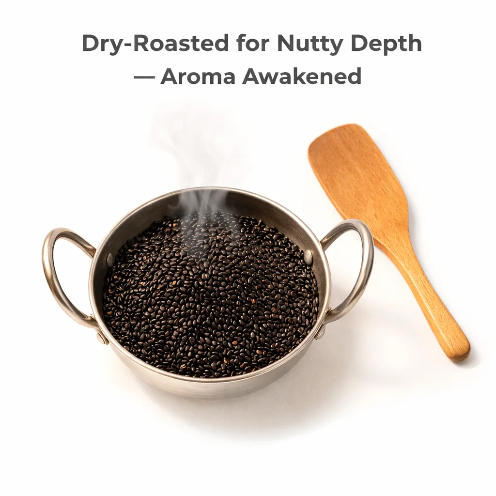 Black Sesame Seeds are premium-quality, nutrient-dense seeds known for their deep nutty flavor and rich nutritional profile. Naturally high in calcium, iron, fiber, healthy fats, and antioxidants, they support bone health, digestion, and overall vitality. Carefully sourced and hygienically packed, these 100% natural black sesame seeds are free from additives and preservatives, making them ideal for cooking, baking, garnishing, and traditional wellness recipes.